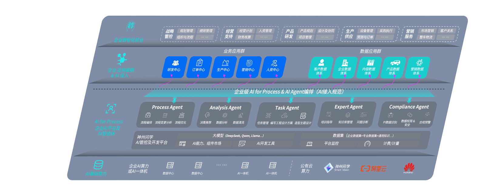 端到端的一站式AI工作空间深度融合了从企业战略规划到日常经营的全流程业务板块,,定向解决车企内部领域多、、部门多、、、链条长、、、场景碎片化等难题,,支持车企快速构建以AI为核心的生产力写作体系,,,实现任务执行与AI能力的无缝集成与交互