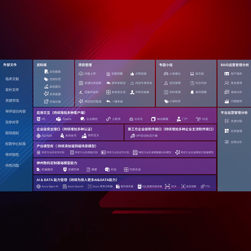 医疗器械产品上市前,,,要熟悉严格与繁复评审标准,,,,整理分析监管机构指导文件中的海量信息。。。。企业急需一个智能化解决方案,,,,提升知识管理效率,,,提高评审通过率,,,,以提升其市场竞争力。。。