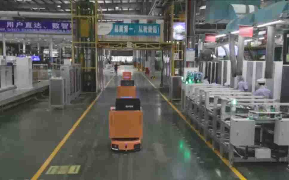 为车载冰箱物流配送打造的智能解决方案,,,包含产中物流通过潜伏举升AMR搬运至线边,,产后成品物流智能仓储,,,,流程包含产中物流智能齐套入库,,,,线边安灯叫料AMR智能配送至线边,,成品入库、、、、出库,,,,通过无人堆高车机器人,,,,智能仓储管理替代人工作业管理,,,实现更高存储、、、更高效率、、、、更具柔性化的解决方案。。。